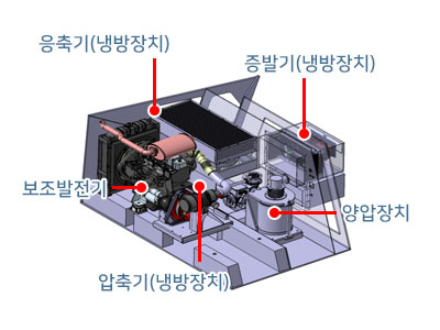 K200장갑차 계열차량인 신형화생방 정찰차 궤도형냉방장치(용량 8,000kcal/h급), 소형전술차 계열차량인 신형화생방정찰차(차량형)에 사용되는 4,500kcal/h급 냉방장치를 자체 기술로 개발하여 양산하고 있습니다.